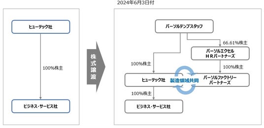 こうした両者の強みを活かすべく、パーソルテンプスタッフが、ヒューテックおよびその子会社の株式会社ビジネス・サービスの株式を譲り受けることとなりました。