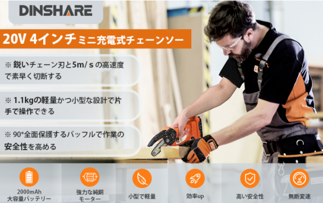 DINSHARE 4インチ電動チェーンソー JC-6001