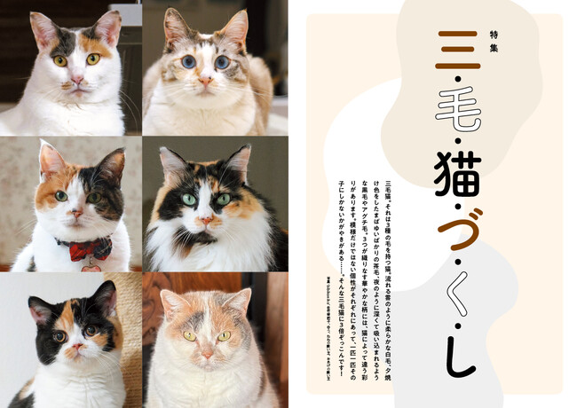 ほかにも、投稿コーナー「あつまれ! 三毛猫」で個性あふれる三毛たちが登場