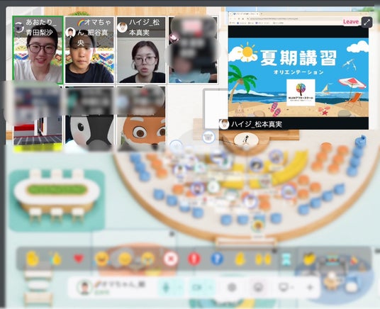 顔出しをして話をする子ども、チャットで話をする子ども、リアクションのみで参加する子ども、