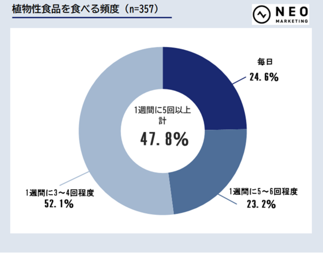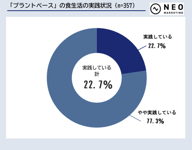 普段、「プラントベースフード」の食生活を実践しているかについて、「実践している」「やや実践している」と回答した方を対象としています。