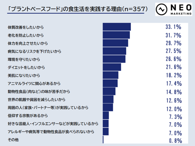 「プラントベースフード」の食生活を実践している理由をお聞きしました。