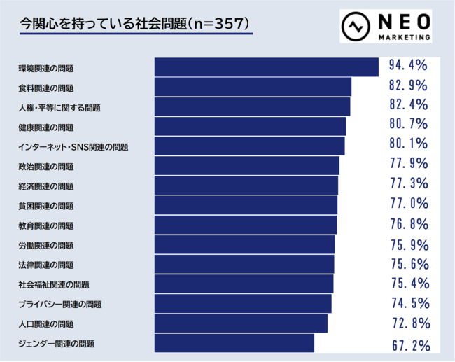 今関心を持っている社会問題についてお聞きしました。これらの社会問題の多くは、前掲したSDGs(持続可能な開発目標)17の目標とリンクしています。