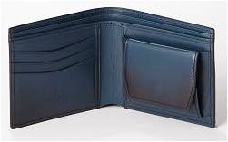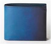 皮はイタリア産ベビーカーフを使用。透明感のある染料で絵画のような色合いと革本来が持つ表情が楽しめます。〈ユハク〉Vertula 二つ折りサイフ 37,800円 / 7階紳士雑貨