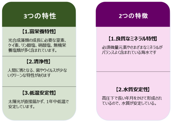 完全にノロウイルスが存在しない海水として、海洋深層水を養殖海水に使用することにしました。しかし、課題となったのは、海洋深層水には人に害を与えるウイルス・細菌が存在しない代わりに、牡蠣の餌となる微細藻類※7(植物プランクトン)も存在しないことでした。