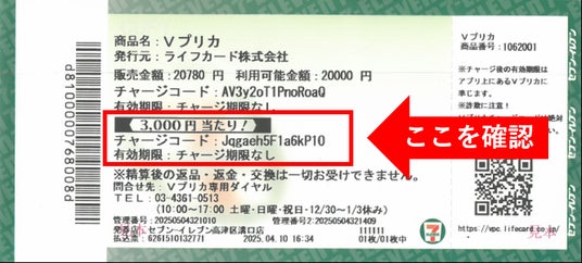 ※Vプリカチャージコードは大切な番号です。絶対に第三者へ渡したり教えたりしないでください。