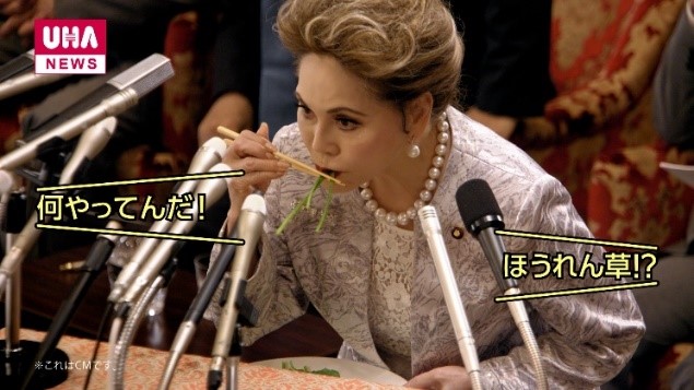 撮影ではデヴィ夫人に何度もほうれん草を食べてもらう必要があり、お叱りを覚悟の上、おそるおそる演技のお願いするも、NGは一切なし。すべてのカットに果敢に挑むデヴィ夫人の姿に撮影現場スタッフは、何度も驚かされました。