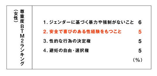 女性は、 「安全で喜びのある性経験」などの尊重実感が希薄に。