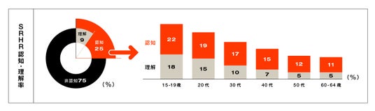 日本のSRHR認知率は25% 理解は9% 若年層ほど認知率・理解率が高い結果に。