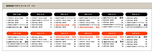 重要だと思う項目 女性30代から50代 各年代1位は「性的な行為の決定権」