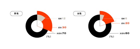 男性のSRHR認知率・理解率は女性よりも高い一方、SRHRに対する重要意識は24%低く、尊重実感は13%ほど女性より低い結果に。特に男性20-40代でその傾向が強いことが明らかになりました。