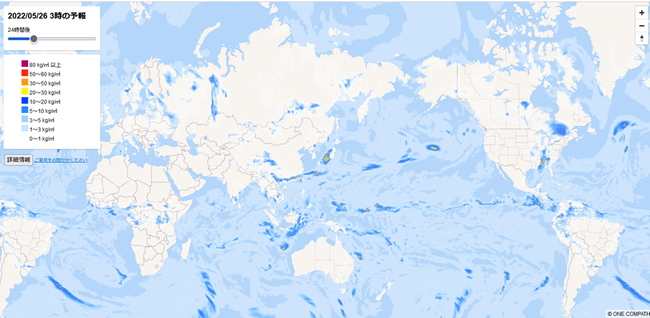 凸版印刷株式会社のグループ会社である株式会社ONE COMPATH(ワン・コンパス)では、位置情報や地図を中心とした様々な技術情報の発信やβ版サービスを試験的に公開するサイト「マピオンテックラボ」で、アメリカ海洋大気庁(NOAA)の降水データを活用し、6時間ごとに3日後までの地球全体の降水予報を確認できる「世界降水マップ」を追加し、本日公開しました。