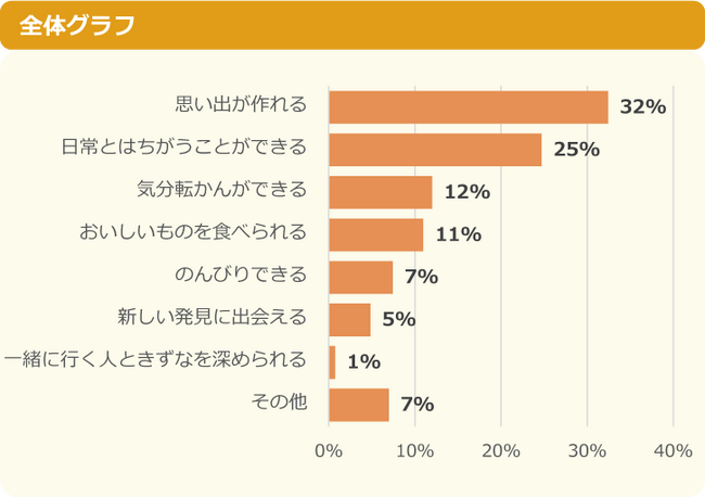 その他には「お土産を買えるから」「非日常の中で家族の偉大さが再認識できる」などのコメントがありました。