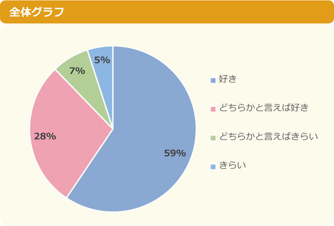 全体の59%が「好き」、28%が「どちらかと言えば好き」と回答し、合わせると約9割の人が家族との旅行を好ましいと感じているのがわかりました。