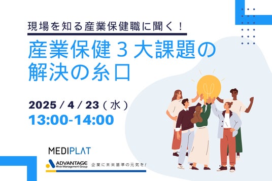 株式会社アドバンテッジリスクマネジメントは、2025年4月23日(水)に人事/総務/労務部門、メンタルヘルス対策の担当者様を対象としたWebセミナー「現場を知る産業保健職に聞く、産業保健3大課題の解決の糸口」を開催いたします。本セミナーは「メンタル不調者の増加」「健康診断業務(受診勧奨等)の最適化」「人事担当者の産業保健業務の工数削減」などの課題を解決していくために、産業保健職(保健師)が実践してきた対策・成功事例や、産業保健職の上手な活用方法等について、人事からいただいた質問への回答を含め、対談形式でお話しさせていただきます。