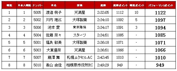 JMCシリーズIIポイントランキングには、すでにMGC出場権を獲得しており、本大会で2位に入った川内理江(大塚製薬)が条件を満たし1位にランクイン。
