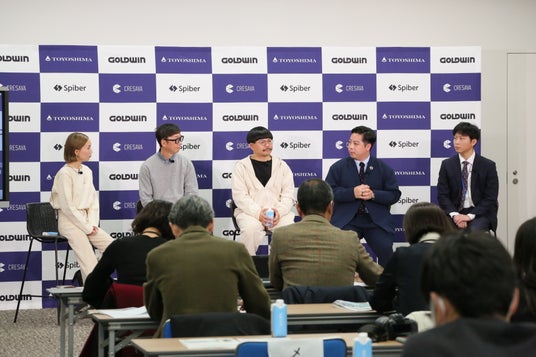 当日は、植物由来のバイオマスを主な原料に、微生物による発酵でつくられる人工構造タンパク質素材のBrewed Protein(TM)繊維を開発するSpiber株式会社 枡野 恵也さんと、Brewed Protein(TM)繊維の開発にも携わり、タンパク質素材を使用しているアパレルの販売をグローバルで開始した株式会社ゴールドウイン 新井 元さんをお招きし、商品開発の苦労や現場の手応えをお話しいただきました。