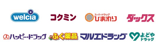 ウエルシアグループが全国で運営・展開する以下の「ウエルシア薬局」、「コクミン」、「スーパードラッグひまわり」、「ダックス」、「ハッピー・ドラッグ」、「ふく薬品」、「マルエドラッグ」、「よどやドラッグ」でご利用可能となります。