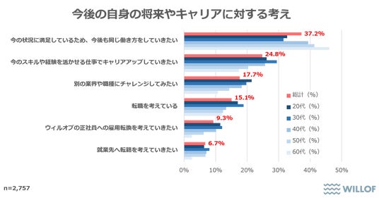 ウィルグループの株式会社ウィルオブ・ワーク(本社:東京都新宿区、代表取締役社長:村上秀夫)は、当社が運営する総合人材サービス『ウィルオブ』を利用する20歳~69歳の派遣社員2,757名を対象に、アンケート調査を実施しました。