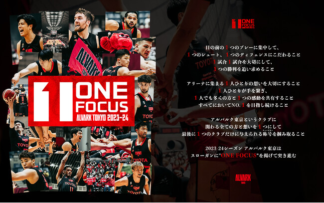 この度、アルバルク東京では2023-24シーズンのスローガンが「ONE FOCUS」に決定いたしましたので、お知らせいたします。