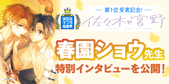 第1位の受賞を記念し『佐々木と宮野』の作者である春園ショウ先生の特別インタビューをピクシブが運営する創作系メディアpixivision(https://www.pixivision.net/)に掲載します。