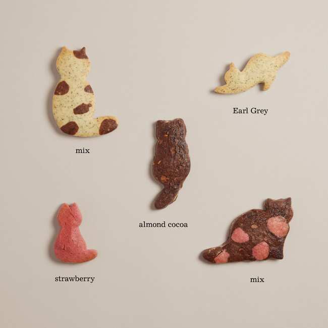 フレーバー:白猫(アールグレイ)、ピンク猫(ストロベリー)、茶猫(アーモンドココア)、ぶち猫(アールグレイ&アーモンドココア、アーモンドココア&ストロベリー)
