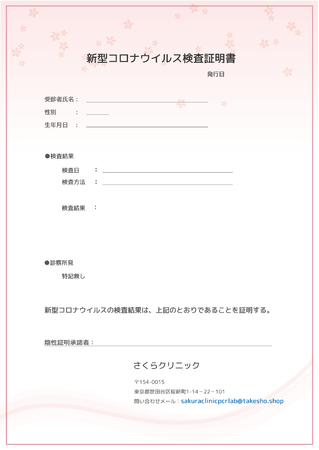 ※PCR検査、結果通知、陰性証明書の発行はさくらクリニックの責任をもって行います。