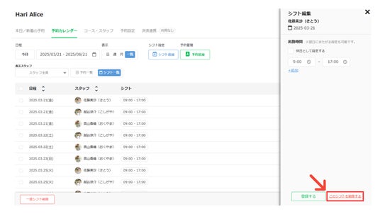 サロン予約機能において、特定日のシフトを個別に削除できる機能が追加されました。