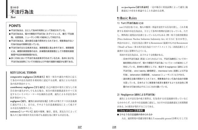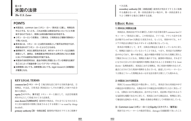 こうした背景を踏まえ、本書では、実務経験豊かな米国法のスペシャリストたちがビジネスシーンで使う米国法の要点を端的に解説しております。初めて法務業務や米国法関連の対応に携わる人でも、短時間でしっかり学習が可能となっております。