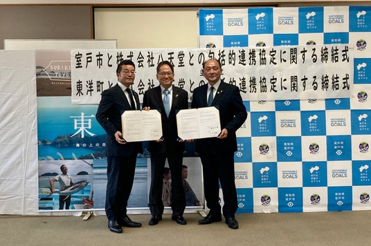 株式会社八天堂(本社:広島県三原市、代表取締役:森光孝雅)は、2024年11月13日(水)に高知県室戸市(市長:植田壯一郎)、高知県安芸郡東洋町(町長:長崎正仁)と包括的連携協定を締結しました。