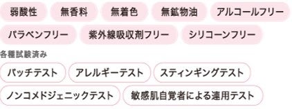 弱酸性・無香料・無着色・無鉱物油・アルコールフリー・パラベンフリー・紫外線吸収剤フリー・シリコーンフリー