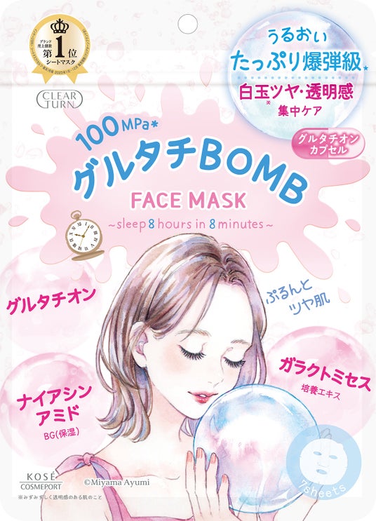 コーセーコスメポート株式会社(本社:東京都中央区、代表取締役社長:小林 孝雄)は、スキンケアブランド『クリアターン』において、人気イラストレーターNappyさんとコラボレーションした「ごめんね素肌」シリーズから、毎日の化粧水代わりに使える「まいにちごめんね素肌マスク」(1品目1品種、ノープリントプライス)を2025年2月21日に、同じく人気イラストレーターミヤマアユミさんとコラボレーションした「BOMB」シリーズから、話題のグルタチオン(保湿)を配合した「グルタチBOMB マスク」(1品目1品種、ノープリントプライス)を3月21日より全国の量販店・ドラッグストアを中心に発売します。