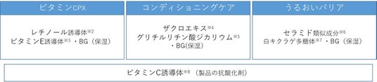 ※6 (メタクリル酸グリセリル/メタクリル酸ステアリル)コポリマー ※7 シロキクラゲエキス ※8 リン酸アスコルビルMg