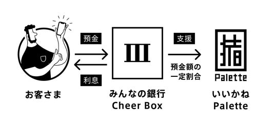 みんなの銀行では、特定の条件で作成された貯蓄預金「Box」の預金残高に応じて支援金を届ける「みんなのCheer Box」と、特定のコードを入力して作成された口座開設数に応じて支援金を届ける「みんなのCheerコード」の仕組みを通じて、チーム・コミュニティとファンを“つなぐ”取組みを展開しています。