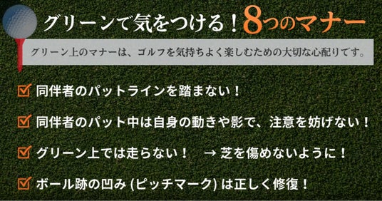 今回更新した動画では、グリーン上で特に重要とされる基本的なマナーを、視覚的に分かりやすい内容で構成。