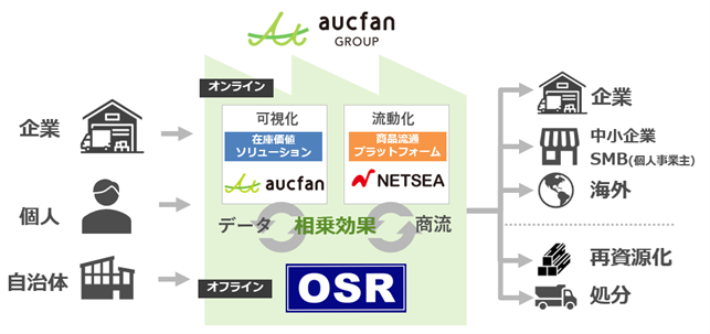 事業においては、創業来培った売買データとAI技術により商品の時価を可視化し、価格と販路を最適化する「aucfan.com(オークファン)」を中心とする在庫価値ソリューション、小売・流通業向けに流通を支援する「NETSEA(ネッシー)」「NETSEAオークション」を中心とする商品流通プラットフォームをSMB(中小企業・個人事業主)向け展開しております。