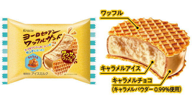クラシエフーズ株式会社は、「ヨーロピアンシュガーコーン」を代表とするヨーロピアンブランドから、濃厚なキャラメルアイスをミルキーなキャラメルチョコレートでコーティングし、サクサク食感のワッフルでサンドした「ヨーロピアンワッフルサンド キャラメル」を2月20日から全国のコンビニエンスストアにて数量限定で発売いたします。