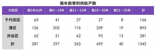 ・東京都千代田区、東京都港区、東京都渋谷区で1995年以降に新築分譲し、2023年1月から2023年12月末(一部の表で2020年1月~12月末、2017年1月~12月末)に中古流通した住戸が対象