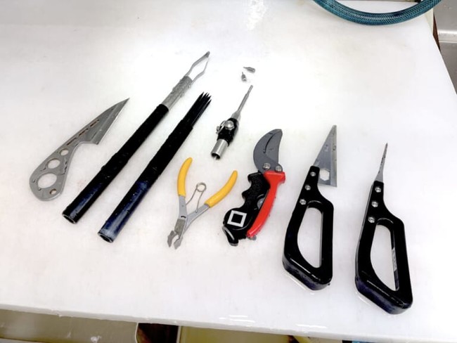 津本「作業効率的にも、プロの仕事としてお客さんに出すのに使うということはともかく、釣り場や家庭レベルなら十分だし、多少ミスがあっても、これ、やるとやらないでは全然違うからアリやと思う。ただ、この100円均一のやと、ちょっと使いにくいから少しだけ改良しようか!」