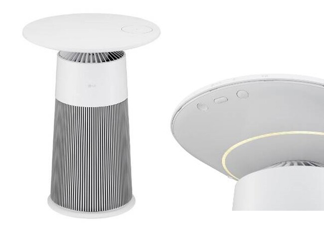 「LG PuriCare(TM) AeroFurniture」は、LGの空気清浄機シリーズ「LG PuriCare(TM)」の新製品として今年7月より本格販売を開始し、「サイドテーブル」、「ムードライト」、「ワイヤレス充電器」としても使える、4in1のマルチ機能を備えた空気清浄機です。筒形の形状で360°全方位から汚れた空気を吸引、キレイな空気を送り出し、お部屋の隅々まで清浄し、3層フィルターによって強力な吸引力を実現しています。