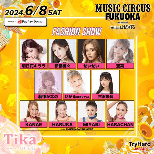 株式会社TryHard Japan(所在地:大阪市中央区)と福岡ソフトバンクホークス株式会社(所在地:福岡市中央区)は、音楽フェスティバル「MUSIC CIRCUS FUKUOKA partner with SoftBank HAWKS」のファッションショー出演モデル第1弾を発表いたします。