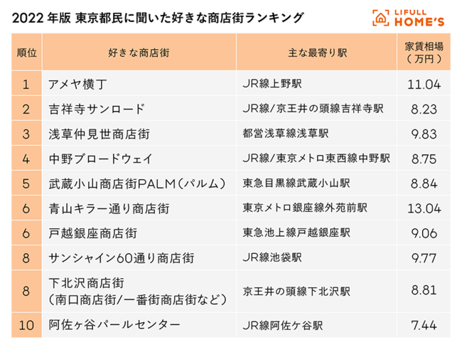2022年版 東京都民に聞いた好きな商店街ランキング