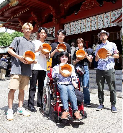 学生5名がボランティアとして参加した本イベントは、都市のヒートアイランド対策と地球温暖化対策の一環として毎夏、リコリタが実施していて、秋葉原のメイドカフェで働く方などが多数参加するイベントです。初開催から20年目を迎える今年は22グループが参加し、一般の参拝客と一緒に打ち水を行いました。