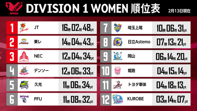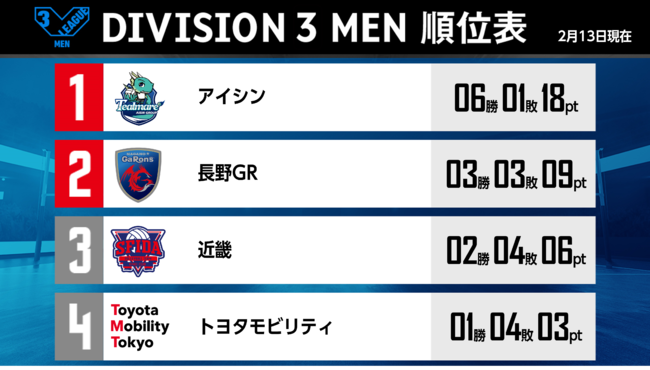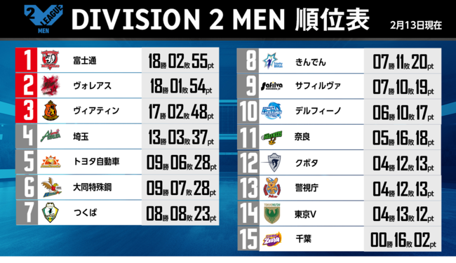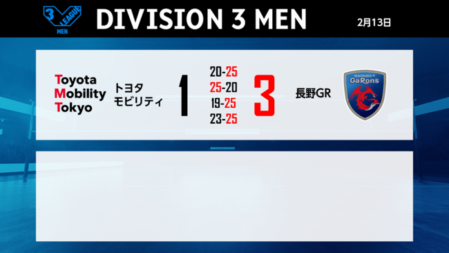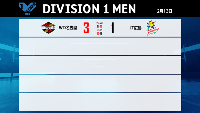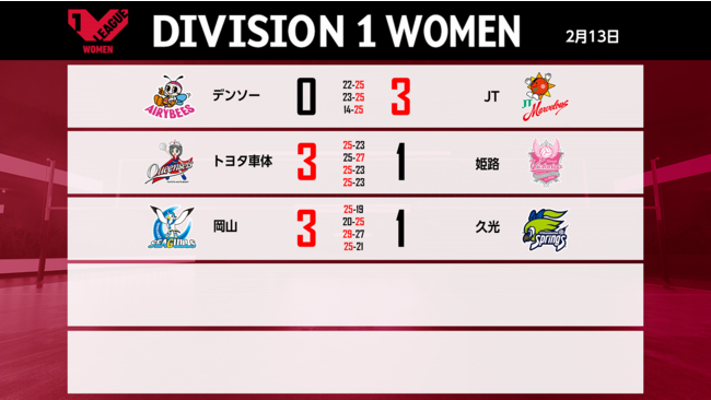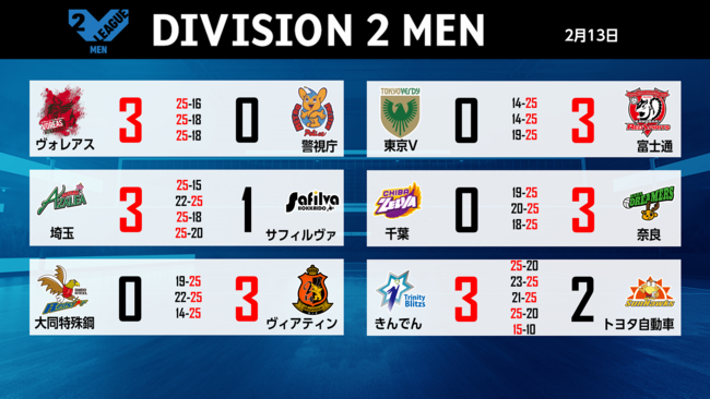 バレーボール国内最高峰リーグ V.LEAGUE【2月13日の試合結果】