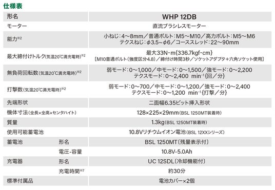 WHP12DB: https://www.hikoki-powertools.jp/products/powertools/li-ion-drill/whp12db/whp12db.html