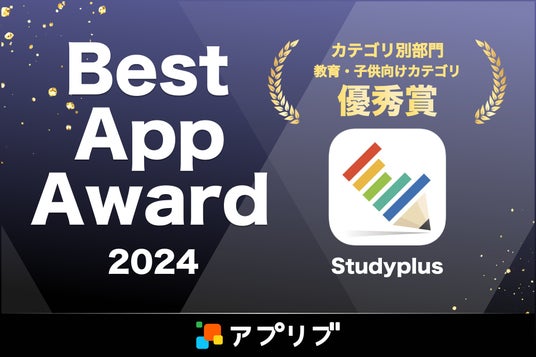 スタディプラス株式会社(本社:東京都千代田区、代表取締役:廣瀬高志、以下スタディプラス)は、スマホアプリ紹介サービス「アプリブ」が主催する『Best App Award 2024』において、大学受験生の2人に1人以上が利用する学習管理アプリ「Studyplus」がカテゴリ別部門教育・子供向けカテゴリ優秀賞を受賞したことをお知らせいたします。