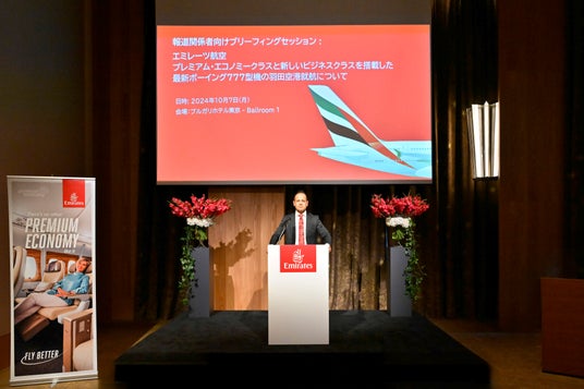 日本・東京、2024年10月8日:世界有数の航空会社であるエミレーツ航空は、2024年9月1日に就航した東京・羽田発着便へのボーイング777型改装機の導入を記念して、報道関係者向けブリーフィングセッションを開催しました。エミレーツ航空は、メディア関係者を招待し、4クラス構成のボーイング777型機の最新製品や強化された機能を紹介しました。また、日本の航空業界と市場におけるエミレーツ航空の今後の成長戦略について、興味深い議論が交わされました。