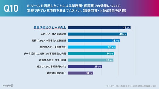 10.BIツール活用による業務面・経営面での効果、「意思決定のスピード向上」が46.5%で最多