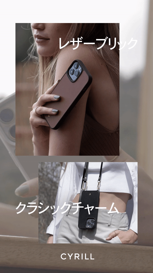シリルのクラシックチャームケースは手首のストラップケース、ショルダーストラップケースの2つのタイプに使用できる理想的なアクセサリーです。