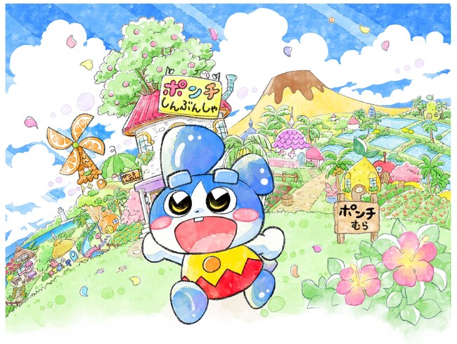 小学館の幼児誌編集部とタッグを組み、2021年4月16日に誕生したキャラクター。こどもりびんぐ発行のフリーマガジン「あんふぁん」「ぎゅって」で短編ストーリーを連載中。公式SNSでは、描き下ろしのイラストも定期的に更新中です。 作画・作話は、2002年に第50回小学館新人コミック大賞児童部門佳作を受賞し、『星のカービィ! も~れつプププアワー!』を月刊コロコロコミックで連載していた谷口あさみさん。新聞記者として働く“寒天”の男の子「ポンちゃん」を主人公に、フルーツをモチーフにしたさまざまなキャラクターが登場。甘い水が湧き出る不思議な泉のある「ポンチ村」で起こる事件を、ポンちゃんたちが解決したり、スクープするために大活躍する物語です。